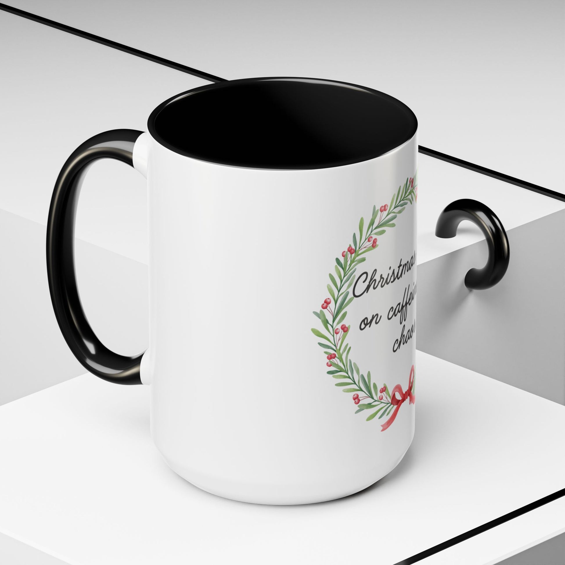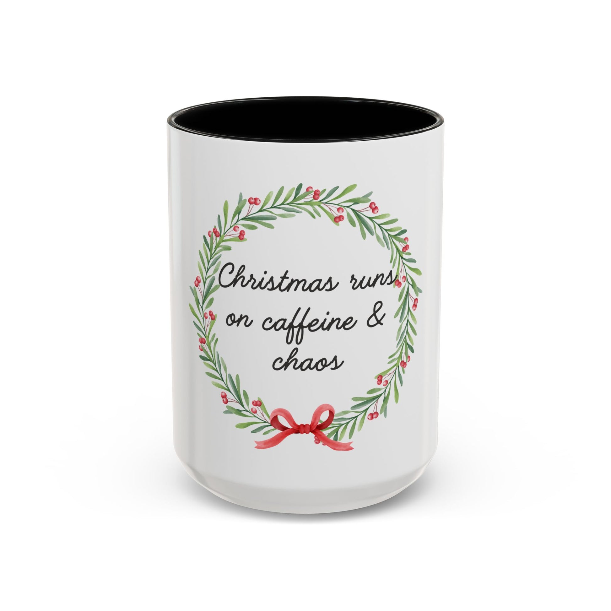 Christmas Runs on Caffeine & Chaos Accent Coffee Mug