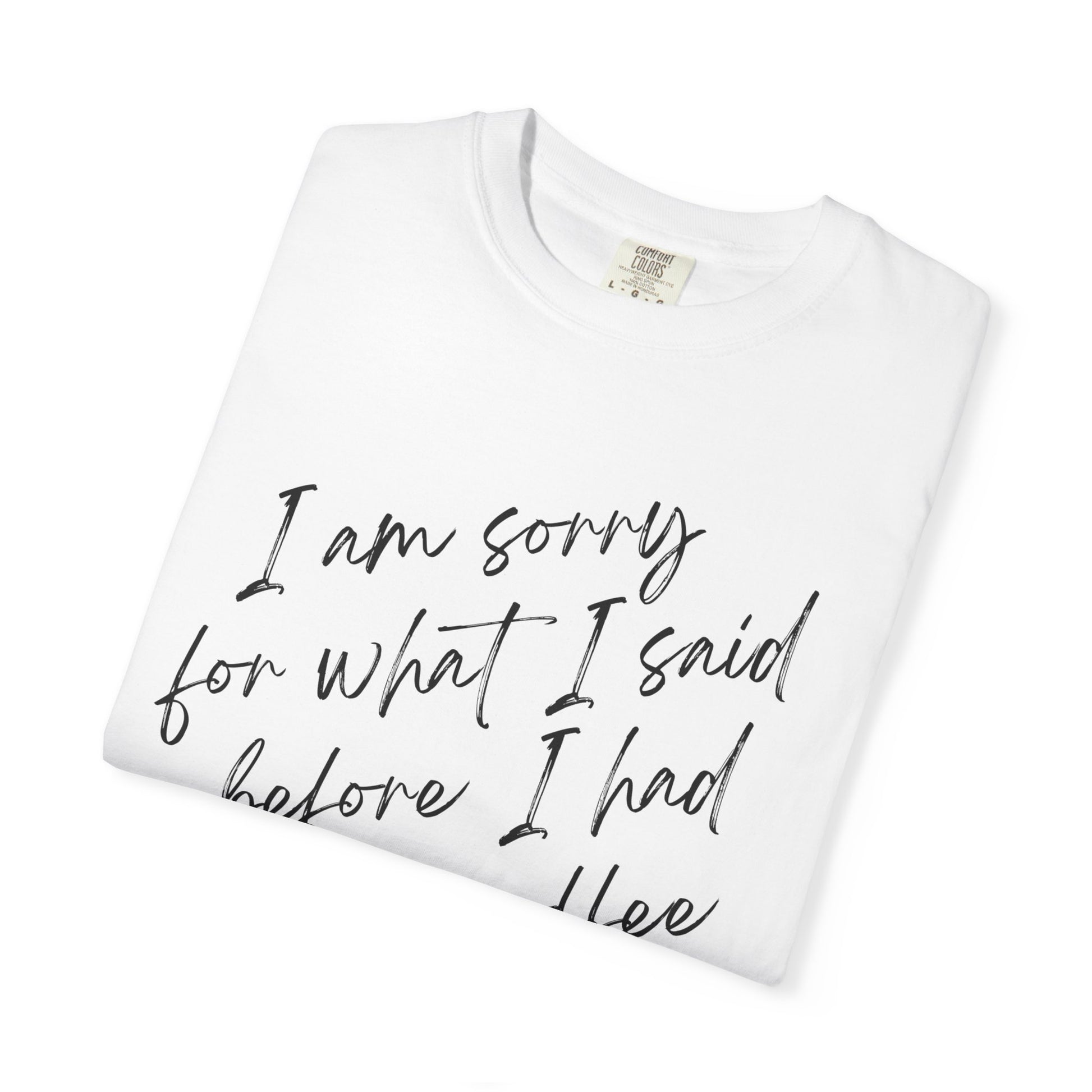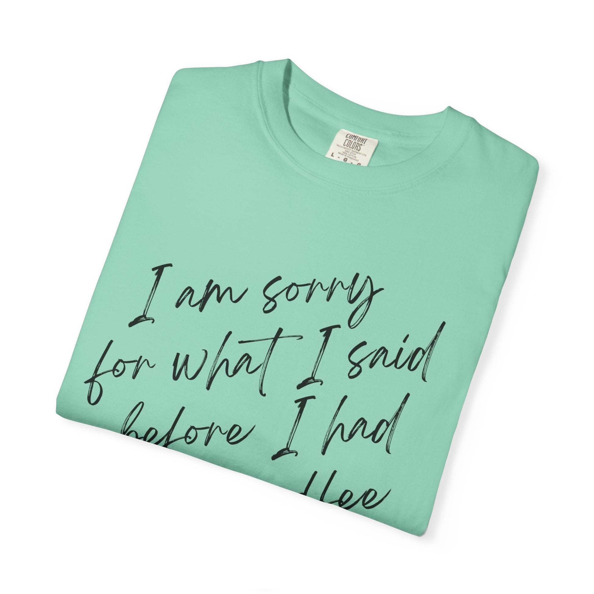 Introducing our comfortable and stylish Garment-Dyed T-shirt, perfect for those who love to express their personality! This tee features a playful sentiment, "I am sorry for what I said before I had my coffee," making it an ideal choice for coffee lovers and those who appreciate a touch of humor. The relaxed fit and classic crew neckline ensure comfort while allowing for effortless styling, whether you're dressing up for a casual day out or lounging at home. Available in an extensive range of 58 vibrant colors, this shirt is perfect for personal use or as a thoughtful gift for friends and family. It's the ultimate choice for birthdays, coffee-themed gatherings, or even as a fun surprise for Mother's Day. Each tee is crafted with high-quality, sustainably sourced US cotton, ensuring not only a great fit but also a positive impact on the environment. Embrace comfort and style with this delightful addition to your wardrobe!